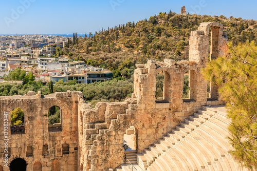 © Iurii Gagarin, Fototapeta premium The ruins of an old amphitheater are seen from a distance, the Acropolis of Athens