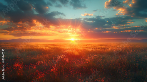 Fototapeta premium The rural plain is bathed in sunshine,sunrise, sunset.