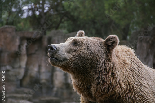 © Anastasia Pestova, Obraz premium The sad snout of brown bear in the forest