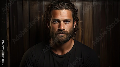 © tanyastock, Fototapeta premium The same man in various poses with t-shirt on background. Man portrait illustration. Generative AI