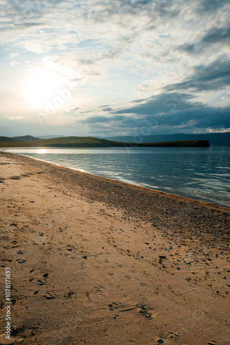 Obraz premium the sandy shore of Lake Baikal at sunset