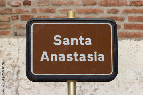 Fototapeta premium The Santa Anastasia sign at the entrance to the Basilica di Santa Anastasia...