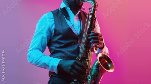 © Nazar, Fototapeta premium The saxophone player in a vest