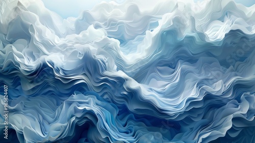 © Sofia, Obraz premium The scene features layers of delicate, cut-out paper shapes forming soft, flowing clouds and abstract wind patterns.