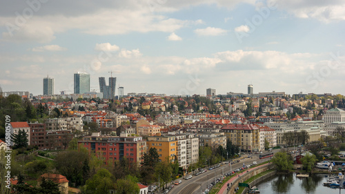 Naklejka premium The scenery of Pankrac, a modern district with skyscrapers in Prague, Czech...