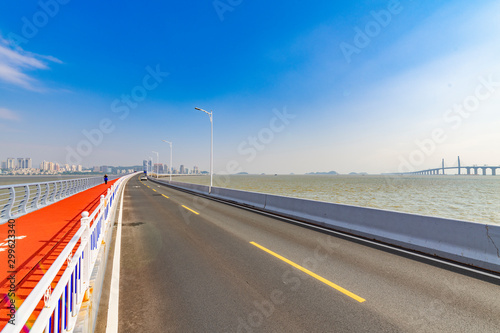 © Weiming, Fototapeta premium The scenery of the artificial island construction bridge at the Port-Zhuhai-Macao Bridge port in Zhuhai, Guangdong Province