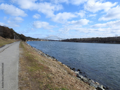 Obraz premium The scenic Cape Cod Canal, during the winter season, Barnstable County,...