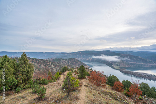 Naklejka premium The scenic view of Kayaboğazı dam at winter time with pastel colors in Tavşanlı, Turkey