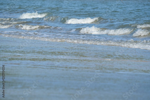 © nopwaratch, Obraz premium The sea water on the beach is a wave of various forms for background.