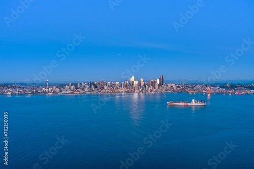 © George, Fototapeta premium The Seattle waterfront skyline at sunset in December