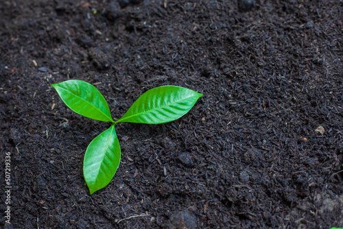 © kheartmanee, Naklejka premium The seedlings grow in the soil for planting. Cultivation for agriculture. Agriculture industry.
