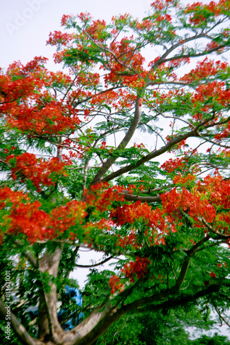 © MR KIM, Naklejka premium the seeds of Royal poinciana are very fleshy and delicious. eaves of Royal poinciana have a feather-like appearance and a characteristic bright, pale green color