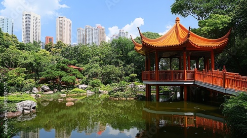 © peerawat, Fototapeta premium The serene atmosphere of the Chinese and Japanese Gardens in Singapore provides a peaceful retreat, with traditional architecture and beautifully landscaped grounds.