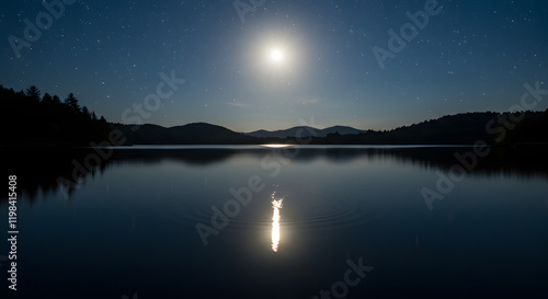 Fototapeta premium The serene landscape featured the moon casting its reflection on the tranquil...
