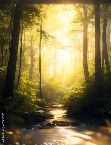 Obraz premium the serenity of a lush forest during sunrise
