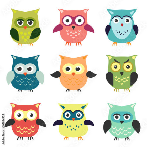 © Nairin, Fototapeta premium The set of owls in cartoon style