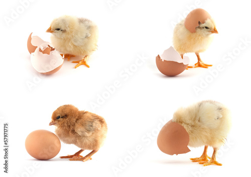 © Sergii Figurnyi, Fototapeta premium The set of yellow small chicks with egg