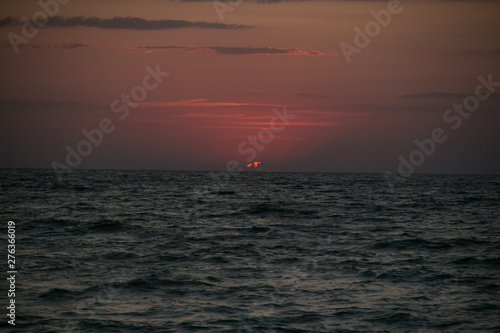 Obraz premium The setting sun going beyond the horizon of the Azov sea