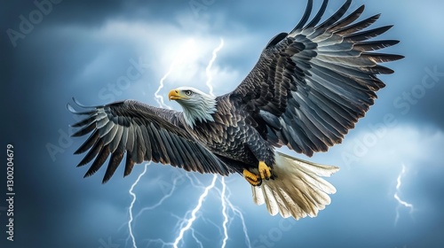 © MKS, Fototapeta premium The shadow of an eagle gliding across a turbulent sky, illuminated by dramatic lightning