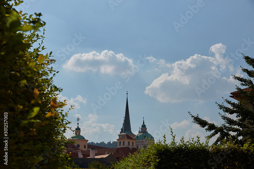 © Adamsov studio, Fototapeta premium The sharp spire of the church against the sky in Prague, Czech Republic.