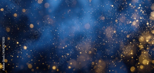 Fototapeta premium The shimmering gold particles dance against a deep blue background.
