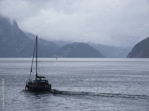 © Lumatis, Fototapeta premium the ship sails on the fjord