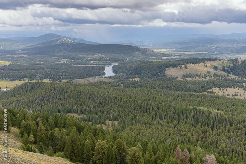 Naklejka premium The shores of the Snake River, seen from the summit of Signal Mountain...