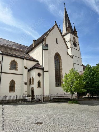 Fototapeta premium The Sibiu Lutheran Cathedral on a sunny day, Romania 2022