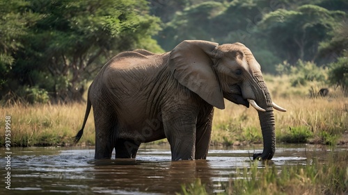 © Rony, Fototapeta premium The sight of elephants gracefully moving through the grasslands is a powerful reminder of the beauty and wonder of our natural world. Let's work together to ensure their future generations can thrive
