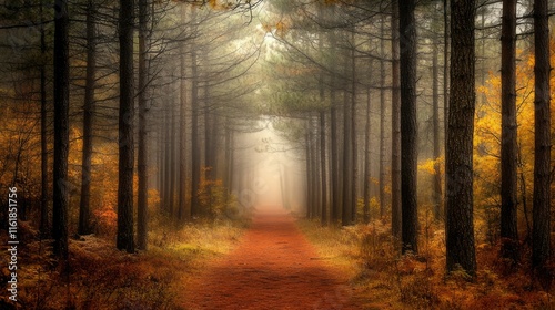 © MDRifat, Obraz premium "The Silent Mist of Fall Woods"