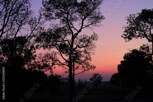 © Phacharida, Fototapeta premium The silhouette of a tree with the twilight sky