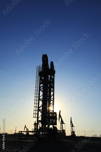 © zhengzaishanchu, Obraz premium The silhouette of oilfield derrick