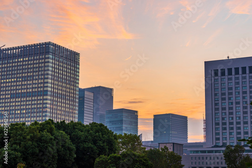 Obraz premium 夜明けの高層ビル群 The sky at daybreak in Marunouchi, Tokyo, Japan