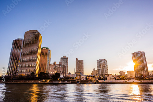 Fototapeta premium 早朝の高層マンション群 The sky at daybreak in Tokyo, Japan