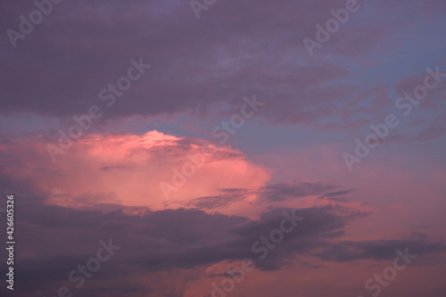 Fototapeta premium The sky at sunset before bad weather. Low red sunlight illuminates thunderclouds.