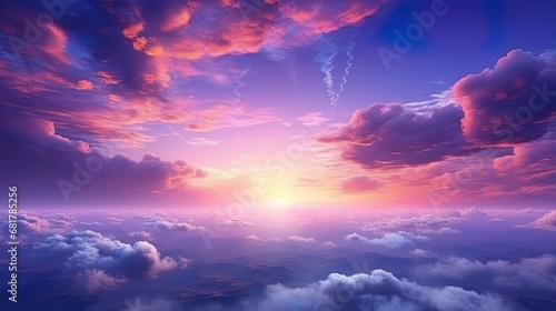 Fototapeta premium The sky embraces twilight with golden, violet, and pink tones in the clouds
