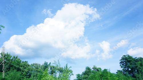 © korn-art, Obraz premium The sky has white clouds natural sunlight shines on the green treetops.