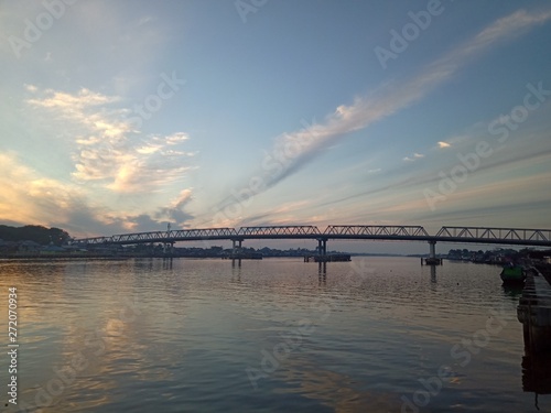 Obraz premium the sky when the sun will rise in the river with the bridge