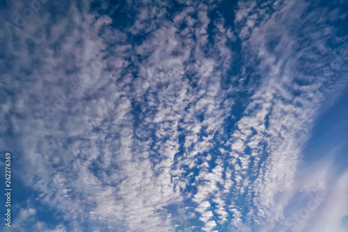 Fototapeta premium The sky with light white clouds illuminated by the setting sun
