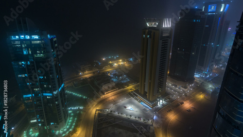 Obraz premium The skyline of the West Bay area from top in Doha day to night timelapse, Qatar.