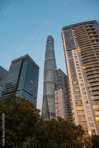 © 子程 龚, Obraz premium The skyscrapes in downtown Shanghai in the evening