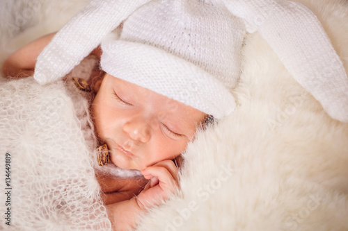 © pyrozenko13, Fototapeta premium The small baby lies on the bed