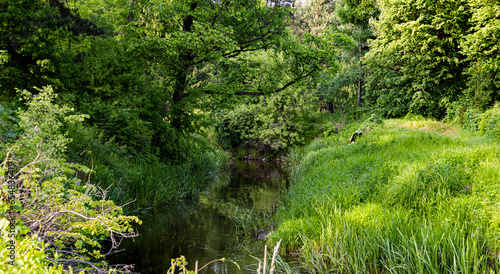 Obraz premium The small Rzadza river hidden among the trees, near the village of Ruda,...