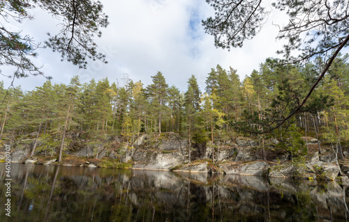 Fototapeta premium The small Skøyenputten lake in Østmarka near Oslo, early fall