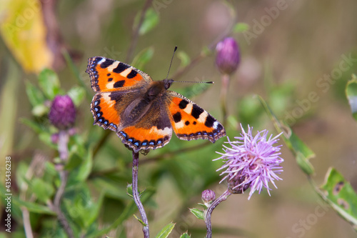 Fototapeta premium The small tortoiseshell (Aglais urticae) on a thistle flower