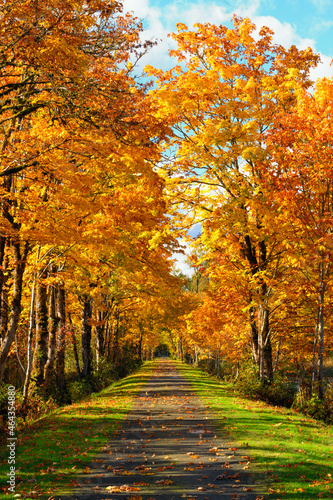 Fototapeta premium The Snoqualmie Valley Trail passes under trees in fall orange and yellow colors in Western Washington State