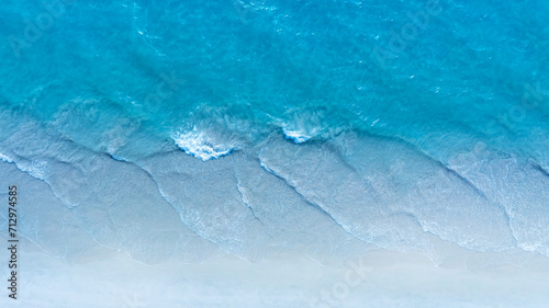 © SASITHORN, Fototapeta premium The soft wave water of the sea on the sandy beach background