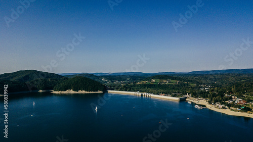 Fototapeta premium The Solina Reservoir and the hydroelectric power plant.