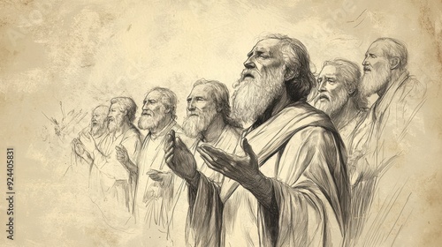 © T Studio, Fototapeta premium The Song of Moses in Deuteronomy - Blessings and Curses - Israelites Deeply Moved - Biblical Illustration - Bible Wall Art with Beige Background