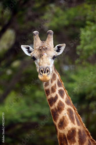 © Karlos Lomsky, Fototapeta premium The South African giraffe or Cape giraffe (Giraffa giraffa giraffa), portrait male with battered horns